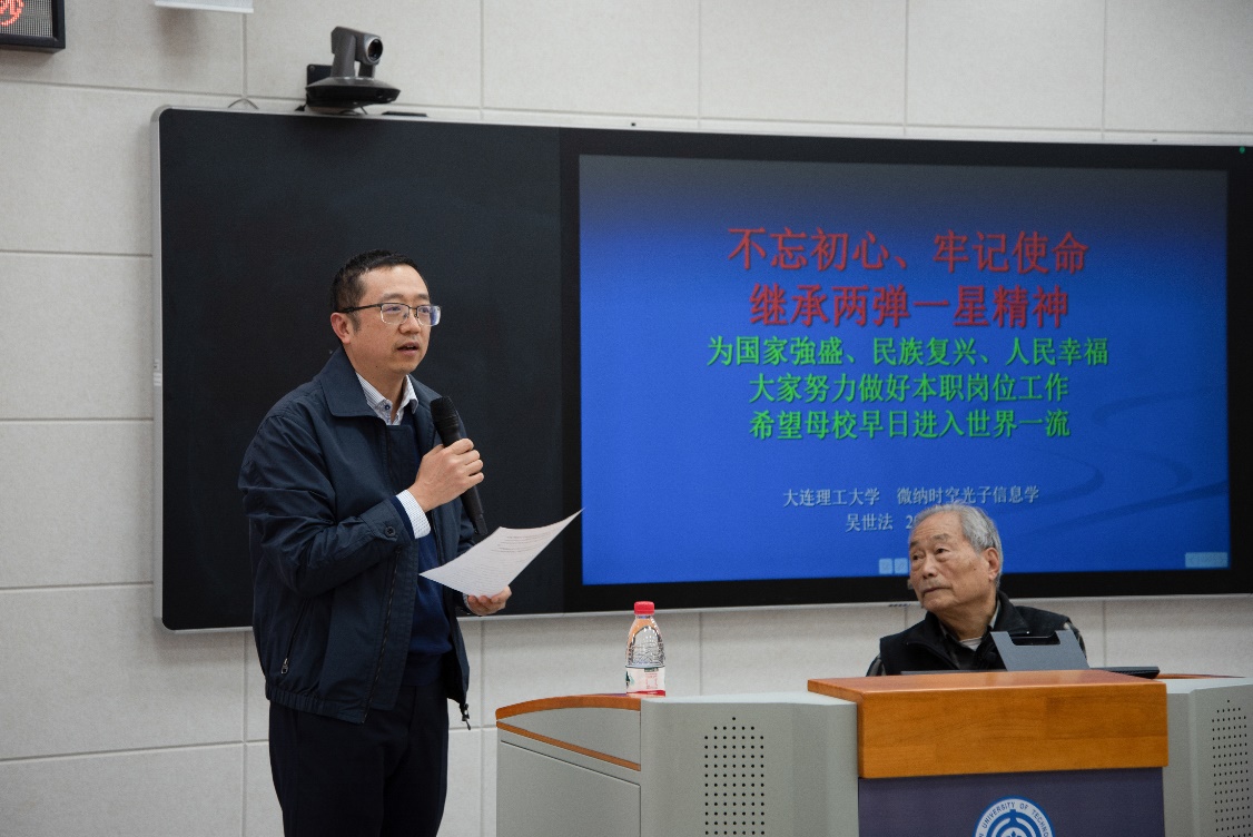 为进一步落实学校及学院“不忘初心、牢记使命”主题教育方案,丰富学习形式,积极开展革命传统教育、先进典型教育,突出“以身边榜样教育身边党员、以身边事感染身边人”,广发网页版邀请到我国第一颗原子弹研制工作主要参加者、学院退休教师吴世法教授,于10月31日下午在材料馆201党建智慧教室开展《继承“两弹一星”精神 不忘初心、牢记使命》集中党课活动。