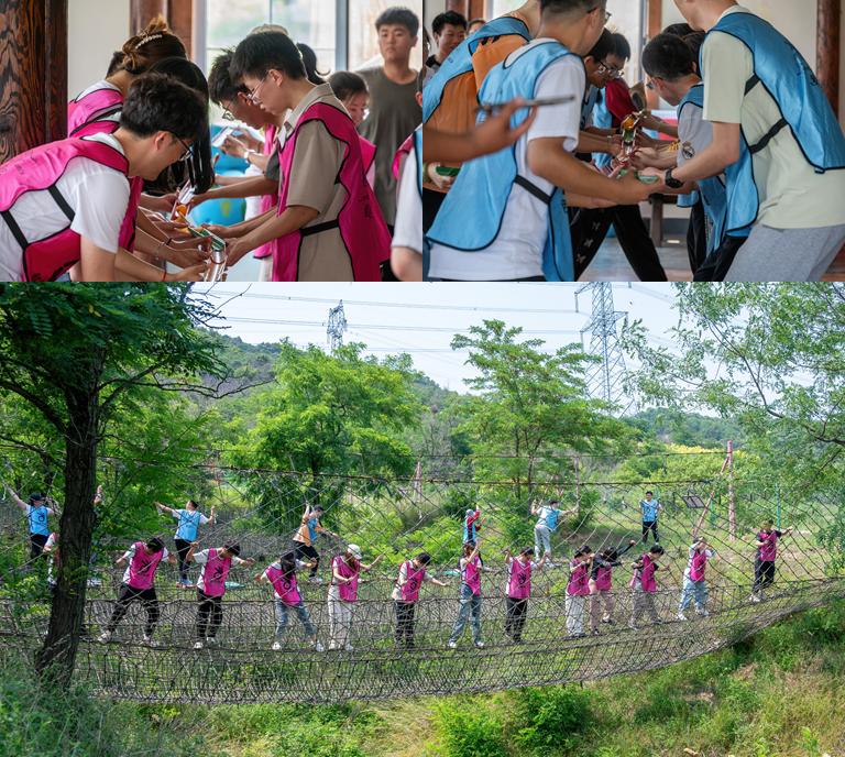 在位于关向应纪念馆近旁的红色拓展基地中,师生党员通过“执行力提升科目”“U型管协作运输科目”“铁索九桥体验科目”等团体训练项目,锻炼协作能力、拓展团体动力。在“铁索九桥体验科目”中,师生党员协力研究“过桥”方案,在模拟感知红军长征艰难险阻的同时,享受协作共赢的畅快体验。