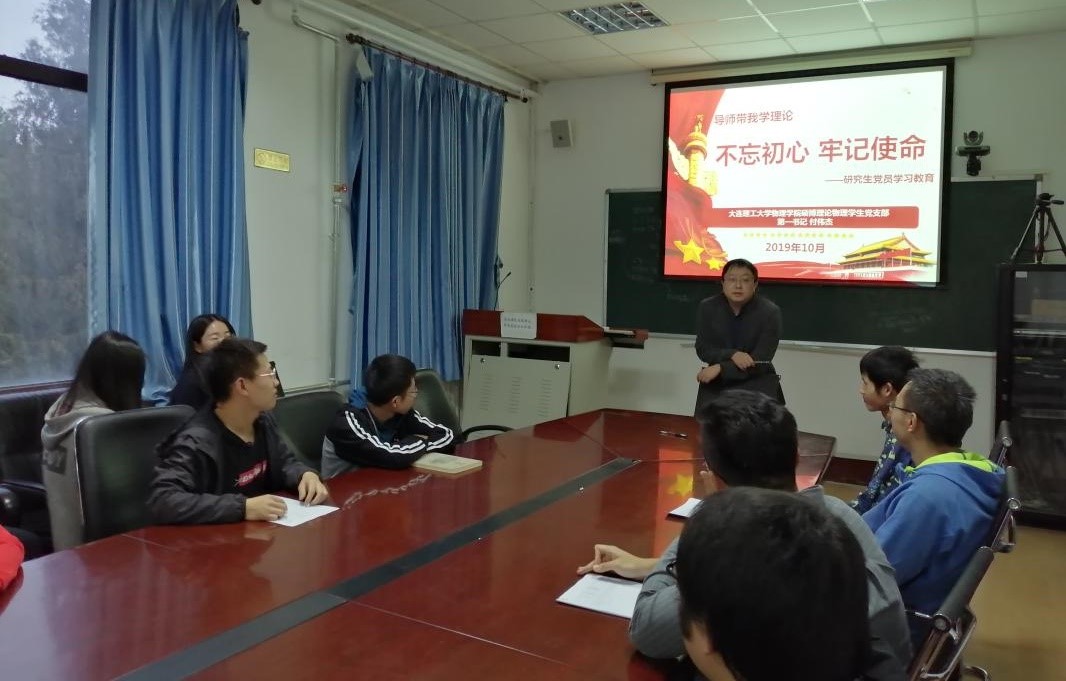 为了深入贯彻落实“不忘初心、牢记使命”主题教育“守初心、担使命,找差距、抓落实”的总要求,2019年10月16日下午,广发网页版硕博理论物理学生党支部在物理楼425会议室开展“导师带我学理论”研究生党员主题教育活动。会议由理论物理学生党支部书记李星利主持,由支部第一书记付伟杰老师讲述其在海外留学后,如何保持初心,学成后回国发展的过程。支部党员,发展对象,积极分子和团员代表等参加了学习。
