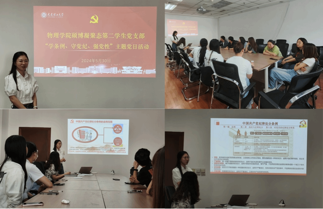 当前,全党正在深入开展党纪学习教育,为加强支部全体党员的党性修养和纪律意识,广发网页版硕博凝聚态第二学生党支部于2024年5月30日下午,在科技园C座510会议室召开党员大会暨“学条例、守党纪、强党性”主题党日活动,本次会议由支部书记杨秋萍同志主持,支部全体党员参会。