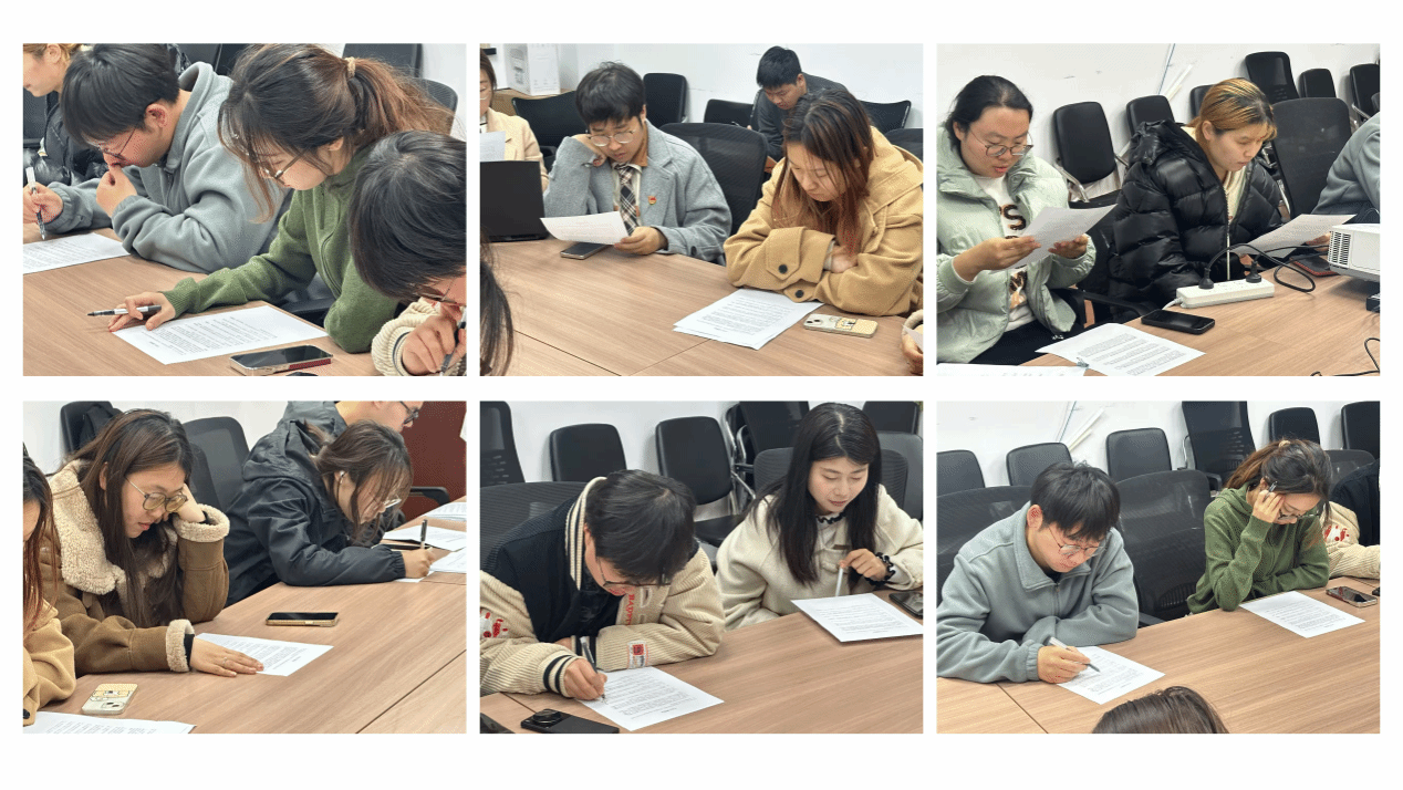 全体成员在个人自学中进一步研读政策文件,深刻认识中央八项规定是新时代全面从严治党的切入口和动员令,作风建设必须常抓不懈。为深化学习成果,最后特别设置“中央八项规定精神学习教育知识竞赛”。题目涵盖文件核心要点、高校常见风险场景及纪律要求等内容。师生党员通过知识竞赛环节既检验了学习成效,也巩固了对中央八项规定精神的理解,进一步强化了将纪律要求转化为日常科研与教学实践的自觉性与坚定性。