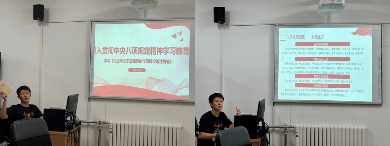 为推动深入贯彻中央八项规定精神学习教育走深走实,切实提升党员的政治素养和理论水平,增强党支部的凝聚力,广发网页版硕博等离子体第三学生党支部于2025年5月29日在物理楼422室开展主题党日活动暨深入贯彻中央八项规定精神学习教育主题党课。会议内容主要包括讨论和表决预备党员的转正问题以及学习专题党课。会议由党支部书记高子豪同志主持,党支部全体党员参会。