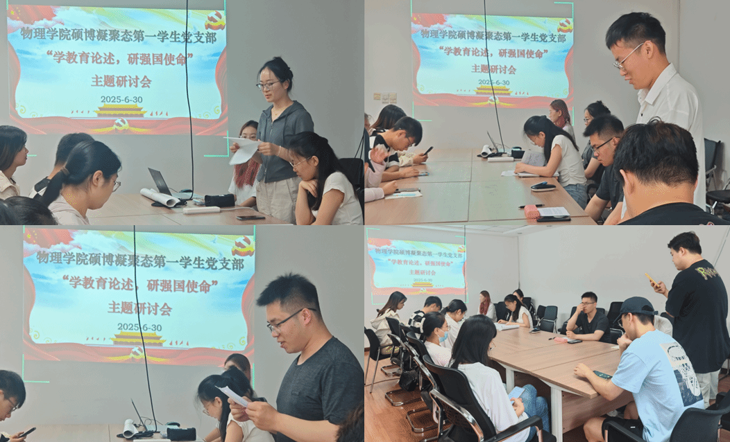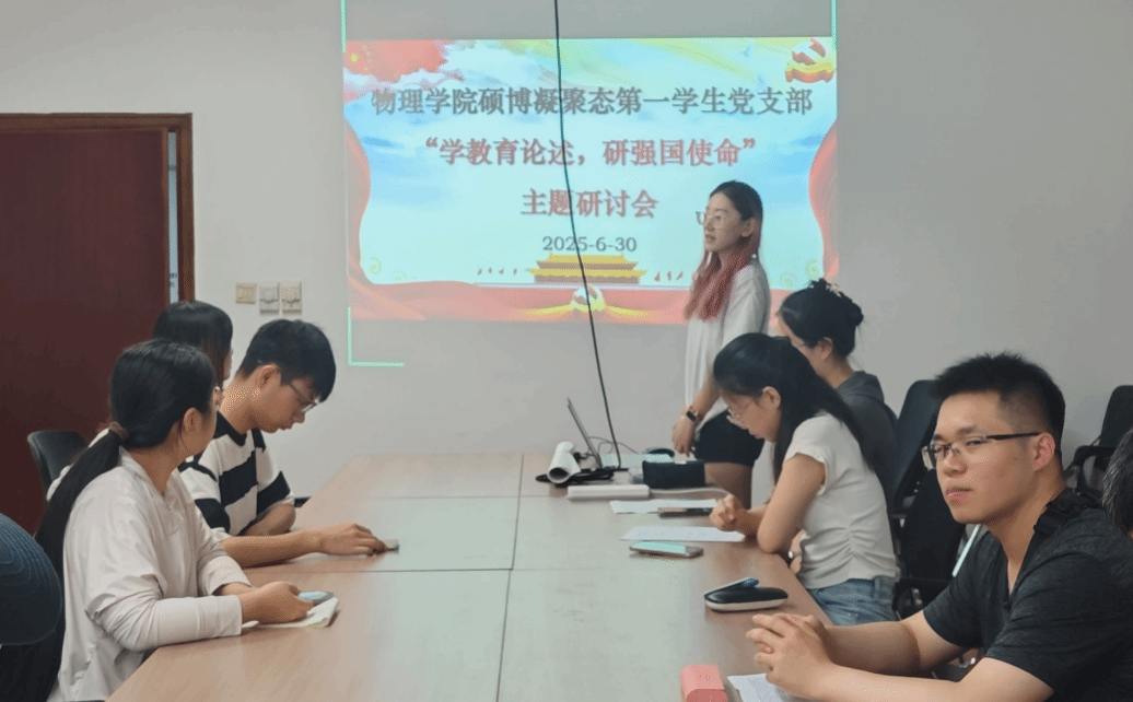为巩固党员集中学习成效,准确把握习近平总书记广发网页版教育的重要论述精神,同时庆祝中国共产党成立104周年,2025年6月30日上午10点,广发网页版硕博凝聚态第一学生党支部在科技园C座510会议室开展主题党日活动暨党员集中培训主题研讨会,会议由党支部书记郑祉溦同志主持,党支部全体党员参会。
