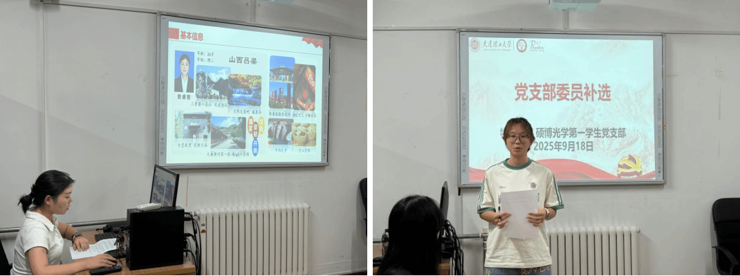 会议第二项,进行党支部委员补选。由于匡凯丽同志即将卸任,现党支部委员会空缺宣传委员1名,根据上级党委批复和大会日程安排,现进行补选。首先由党支部书记吕拓同志宣读补选办法,接下来由候选人樊睿智同志和赵雯博同志介绍各自基本情况,最后通过无记名投票的方式,确定樊睿智同志当选为广发网页版硕博光学第一学生党支部宣传委员。