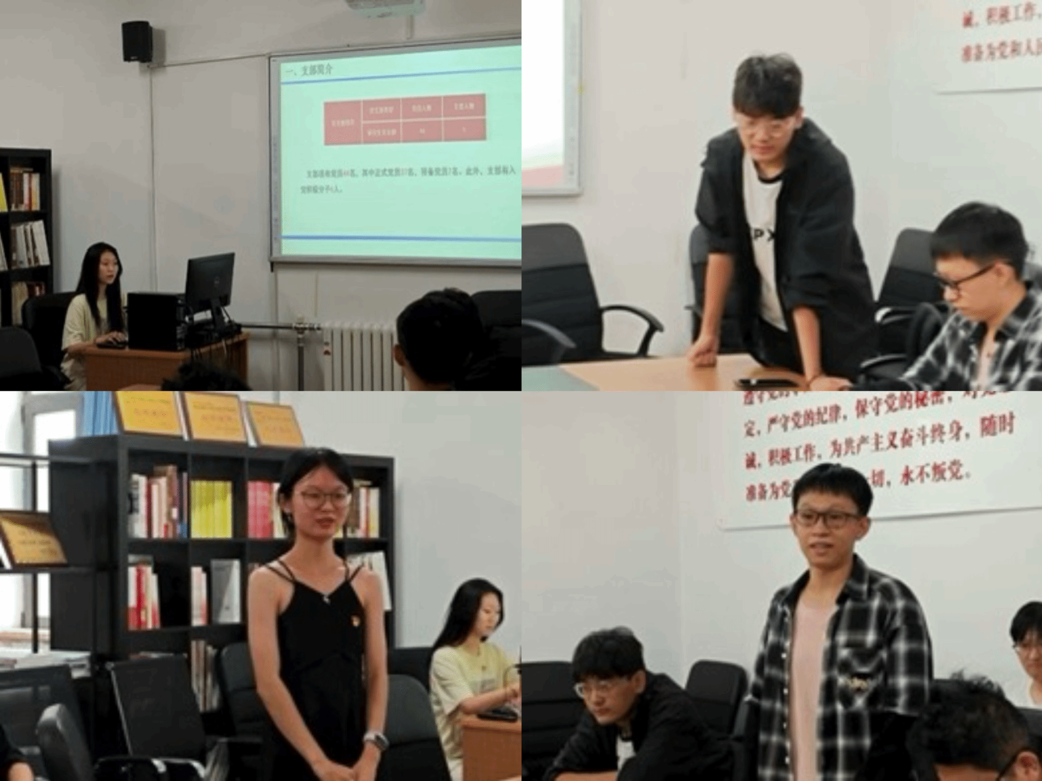 会议第一项,由党支部书记向大会报告了党支部最新建设情况,并为马晴、赵烨彤、郑强三位新加入的党员同志举行了欢迎仪式。三位新生党员依次发言,分享了各自的学习背景、科研方向以及加入党组织的初心,表达了在未来学习工作中恪守党员标准、积极担当作为的坚定决心。他们的发言展现了新生党员良好的精神风貌和追求进步的积极态度。
