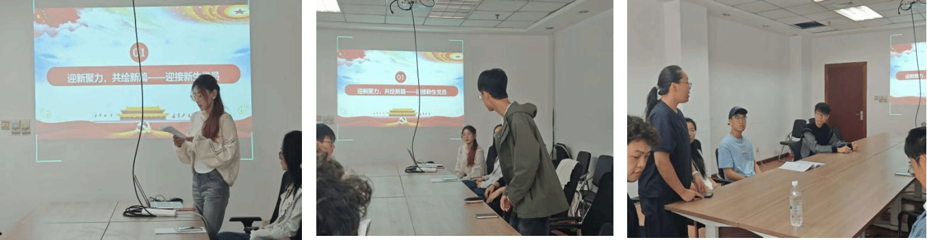 会议第一项,迎接新生党员。首先,郑祉溦同志代表党支部向全体新生党员致以热烈欢迎,她简要介绍了党支部的发展历程、组织架构及近年来的工作成果,让新生党员对党支部有了更直观的认识。新生党员们表示,这次会议让他们更加明确了作为研究生党员的责任,未来会在理论学习和科研实践中不断提升自己,不辜负党组织的期望。最后,郑祉溦同志在总结中强调,党支部将持续为党员搭建成长平台,希望全体党员不忘入党初心,平衡好学习与党员职责,继续学习党的理论,打牢思想根基,在日常生活中发挥先锋模范作用。