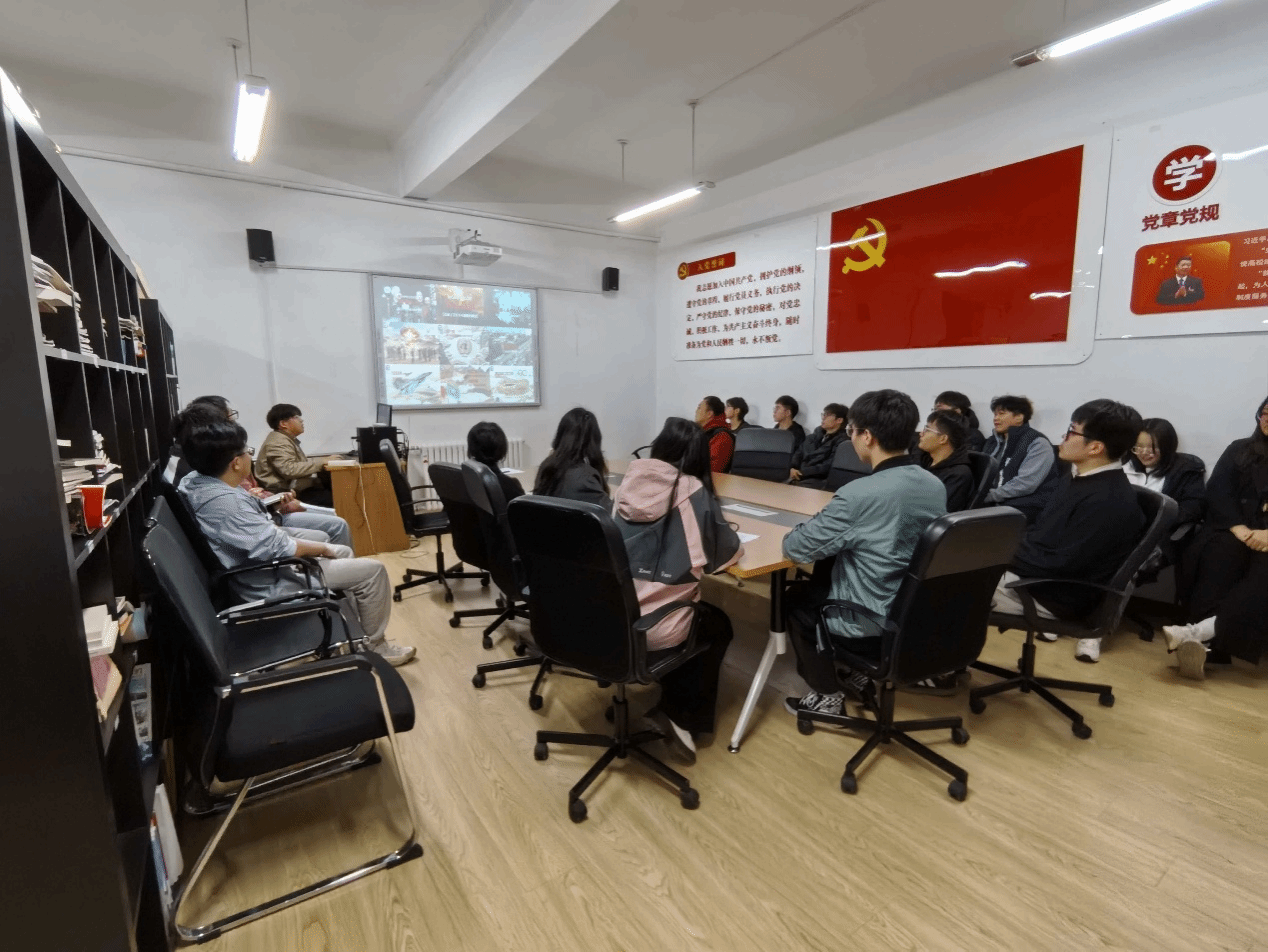 会议第一项,由团支部书记李润泽同志领学。本次学习的主题是“传承红色基因,共祝祖国华诞”,通过回顾反法西斯战争胜利八十周年阅兵盛况,结合我国在政治、经济、科技等领域的卓越成就,引领大家深刻认识到祖国近年来的飞速发展与当前强大局面的来之不易,进而明确青年所肩负的历史责任。