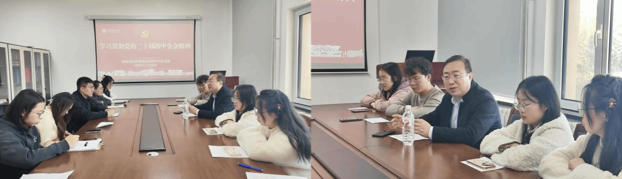 会议第一项,由党委书记于长水教授领学党的二十届四中全会精神。于长水教授围绕“十五五”时期指导思想、“六个坚持”原则、七大主要目标及十二项战略任务等核心内容展开深入阐释,系统梳理了未来五年国家发展的行动纲领与实践路径。于长水教授强调,学习贯彻党的二十届四中全会精神是当前和今后一个时期的重要政治任务。一是要深学细悟,党支部需切实扛起政治责任,通过专题学习、研讨交流等多样形式组织党员深入学习;二是要精准发力,坚持读原著、学原文、悟原理,全面准确领会精神实质,杜绝一知半解、浅尝辄止;三是要广泛宣传,依托党支部公众号、学习群等平台开展全方位宣传,营造浓厚学习氛围;四是要求真务实,注重学习成果转化,将全会精神与党支部建设、学习科研紧密结合,切实履行好“一岗双责”。