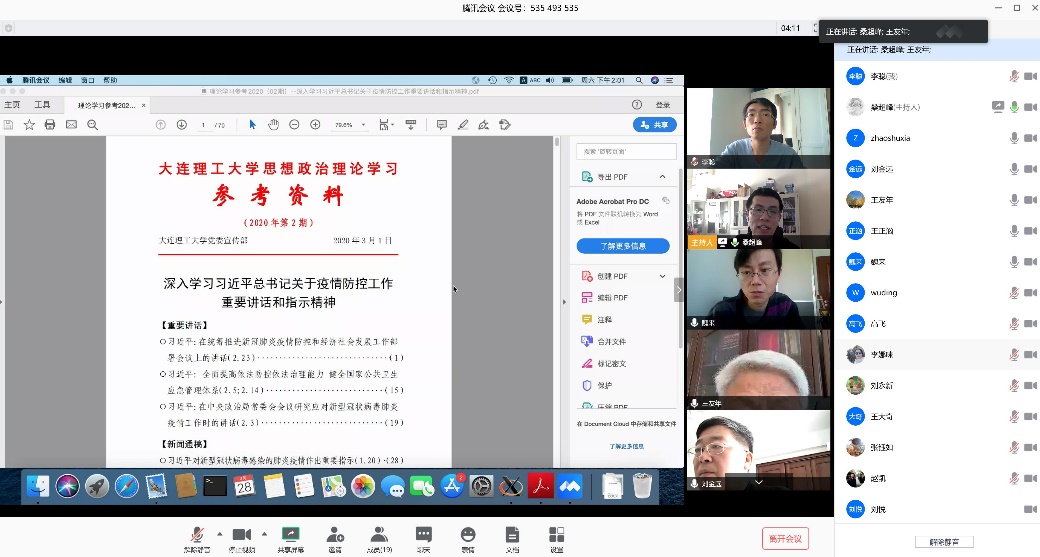 3月28日,等离子体物理教工党支部通过视频会议方式召开了新学期第一次组织生活会,支部全体党员出席会议。支部书记桑超峰同志首先带领全体支部党员进行《深入学习习近平总书记广发网页版疫情防控工作重要讲话和指示精神》理论学习,指出学习要点,肯定了支部成员在疫情防疫工作中的积极表现,号召全体党员同志继续坚持理论学习不放松、充分发挥党员先锋模范作用。