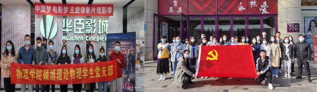 1951年,党中央决定将每年10月25日定为抗美援朝纪念日。为纪念抗美援朝71周年,牢记抗美援朝历史,体会革命先辈之不易,进一步增强和坚定党员的党性意识、宗旨意识,弘扬伟大抗美援朝精神,10月24日上午,广发网页版硕博理论物理学生党支部、硕博原子与分子学生党支部、硕博凝聚态学生党支部联合开展主题党日活动,三个支部四十余名党员同志赴影院参加《长津湖》观影活动。