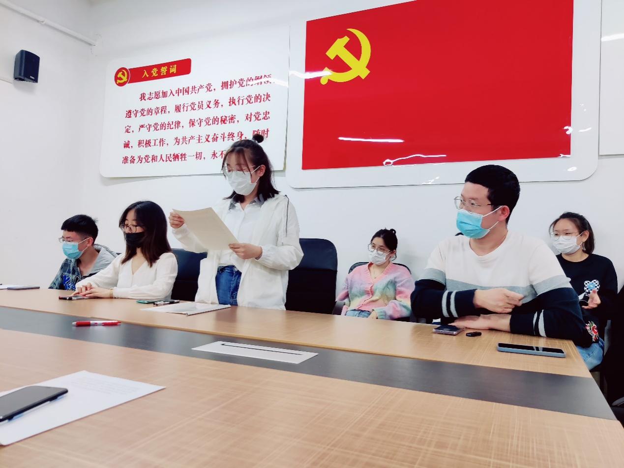 大会第三项为讨论确定发展对象相关事宜。刘津依同学经过一年以上培养教育和考察,基本具备党员条件。在会议上,刘津依同学向党组织汇报了自己对党的认识,入党动机,剖析自己的优缺点,并表明成为党员的决心,表示将进一步接受党组织考察。其两名培养联系人分别为陈永睿同志和宋林育同志,他们分别介绍了该同学的基本情况和在考察期间的表现,并发表意见,表明该同志基本具备条件,说明了可以转为发展对象的意见。经过支部全体党员和群众充分讨论和投票,决定确定刘津依同学为发展对象。