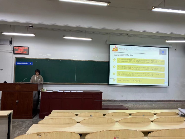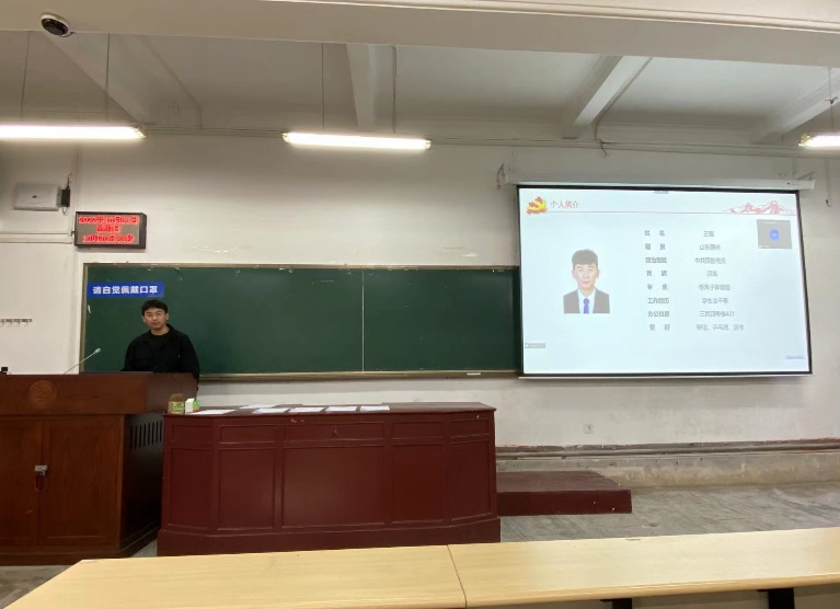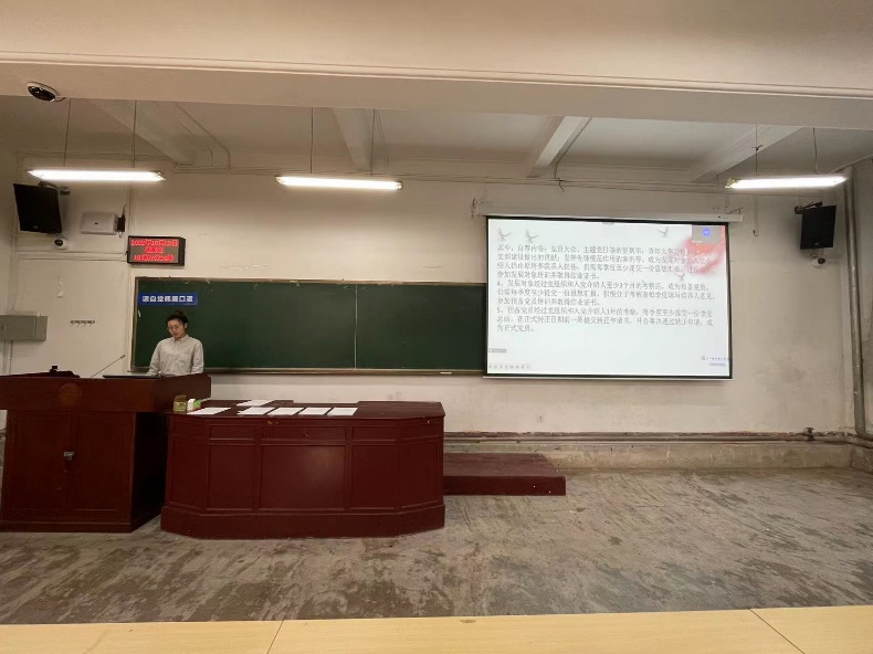 会议第五项,支部书记崔紫宵同志重申和明确支部组织建设的条例和吸纳积极分子入党的要求。从端正入党动机、入党条件和相关材料撰写注意事项等方面展开讲述,重点介绍了入党前的思想准备、撰写材料的注意事项以及各阶段的考察标准。同学们加深了对党的了解和认识,树立了正确的入党动机,纷纷表示会在思想上积极上进,争取早日加入党组织。