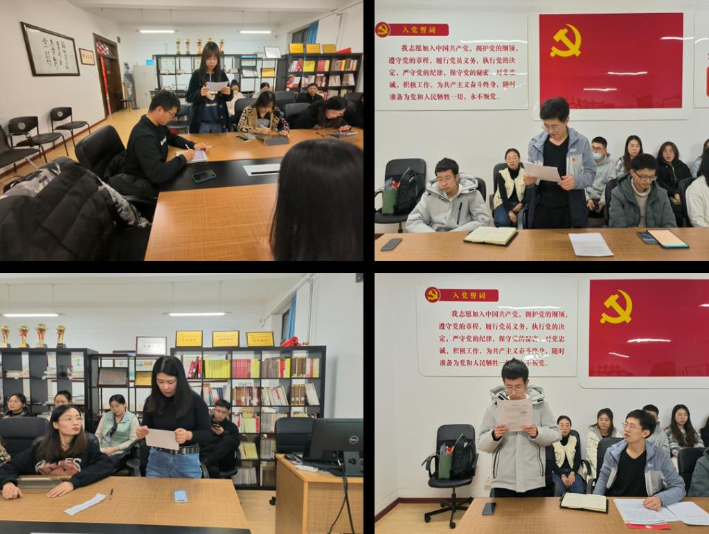 大会第二项是讨论预备党员接收相关事宜。发展对象杨珺雅同学汇报了其在思想、学习和生活上等方面表现以及今后的奋斗方向,表达了强烈入党意愿。杨珺雅同学的入党介绍人刘玉强同志和辛漩漩同志分别对杨珺雅同志的各方面表现作出评价,并对其能否入党发表意见。组织委员陈永睿同志代表支委会宣读了杨珺雅同志的政治审查情况,符合发展为预备党员相关条件。之后,支部成员们对其能否入党进行充分讨论,对杨珺雅同志作出客观评价,最终通过无记名投票的方式同意将杨珺雅同学发展为中共预备党员。杨珺雅同学表示在今后工作和学习中,定会进一步严格要求自己,向身边的优秀党员学习,继续努力改正自己的缺点和不足。