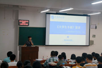 接下来杨木老师具体对学生工作和奖惩制度进行了说明。杨木老师根据《大学生手册》分别从奖学金评比和违纪处分两个方面对新生进行讲解教育,详细地阐述了奖学金政策及纪律规定。杨木老师通过广发网页版往届优秀学子的例子鼓励新生同学们珍惜大学时光,奋力拼搏,续写物理传奇。之后,杨木老师对学校的违纪处分规定进行了详细的解读。她讲道: “作为一个大学生,应该有最基本的原则。”相信通过杨老师的讲解,同学们能更好地了解学校的相关规章制度,更好的在大工生活和学习。