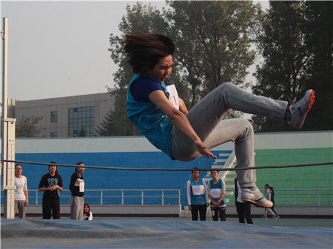 随后的比赛更加精彩,场上运动员奋力拼搏,场下观众们掌声雷动,呐喊不断,为场上拼搏的物理健儿们加油助威。运动会比赛期间,物理与光电工程学院研究生辅导员王文春教授亲临现场给运动员们加油打气。运动健儿们通过自己的努力,取得了一项项可喜的成绩。宫振峰获得了男子200米冠军,跳绳和拔河两个集体项目也都成功折桂。