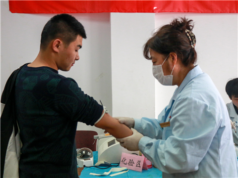 自早上八点半开始,便陆陆续续有同学前来献血。献血现场紧张而有序,在校红十字会的组织下,同学们先在大服楼325室进行填表,稍作等待后在323室进行体检化验,待化验达标后进行抽血。整个献血流程中,学院青协成员在现场进行组织工作,负责签到,帮助献血同学填表,及时供应补给品辅助同学完成献血。