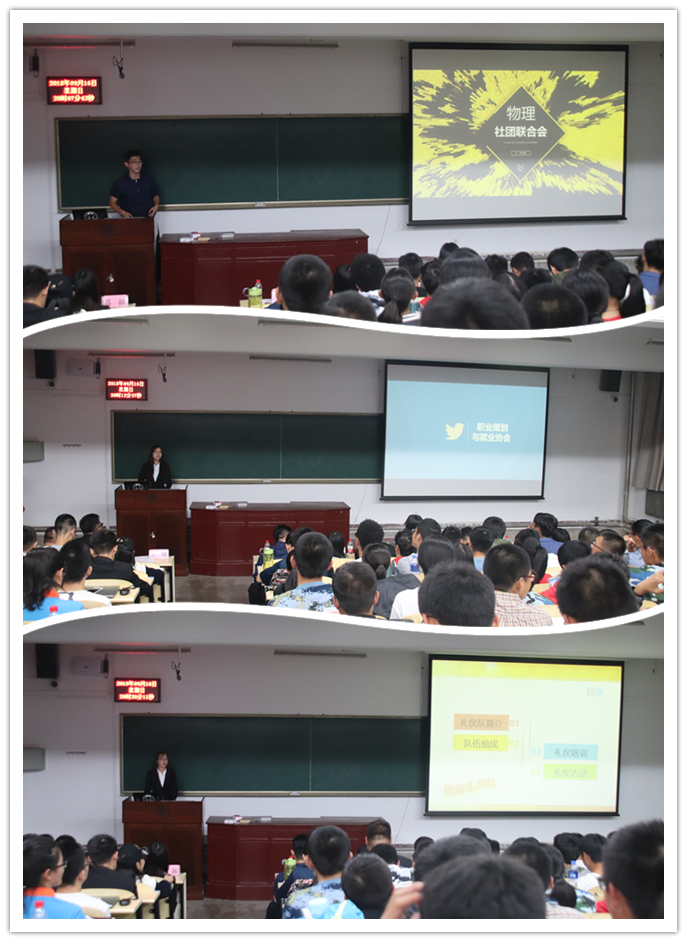 为新生能更好了解团学社各部门构架及其工作,便于选择将来供职部门,同时也促进团学社更好发展,广发网页版在9月16日晚七点半于机械馆152室举办开学第一课暨招新宣讲会,到场嘉宾有学生会主席兼团委副书记边于,团委常务副书记刘禹君,社团联合会主席孙天佐,职业规划与就业协会主席吕拓,以及团委、学生会各部门部长等。