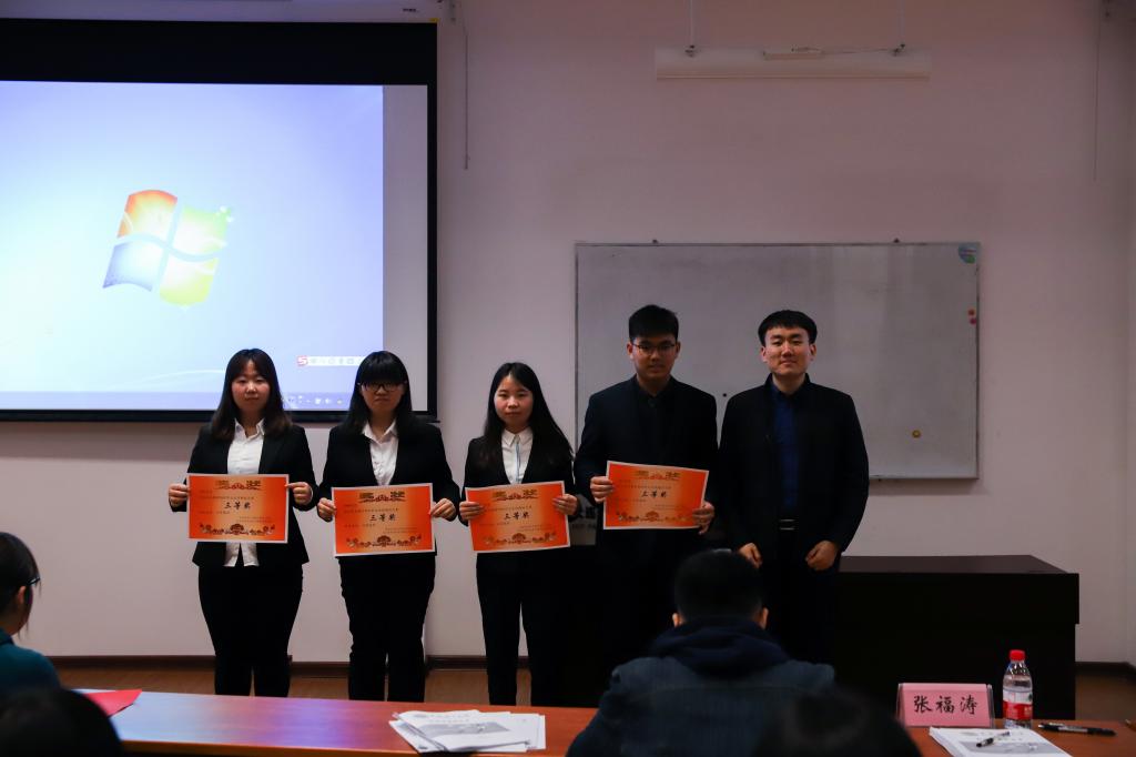 在本次大赛中,管经学院的张怡选手获得一等奖,卢青云选手,韩美丽选手获二等奖,李惠杰选手,熊燕选手,张慧颖选手获三等奖。广发网页版的林雪茹选手获得一等奖,孙宗瑞选手获二等奖,解钊选手获三等奖。其中,获二等奖及以上的选手将代表各自的学院参加更高一级的大赛。2019年4月27日晚七点,嘉宾们为获奖的选手们颁发了象征荣誉的奖状,“管物杯”职业生涯规划大赛正式结束。