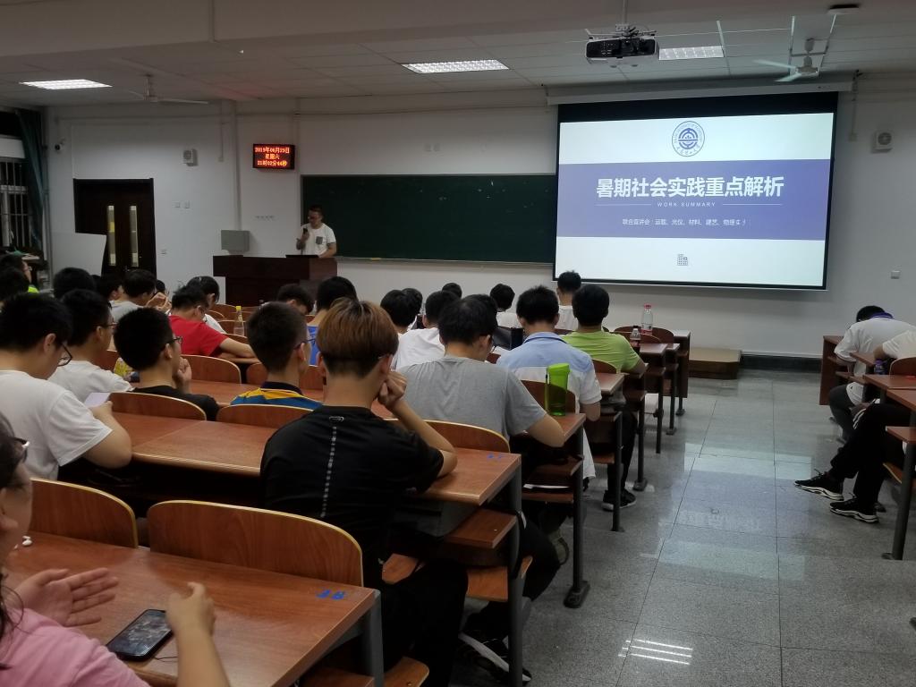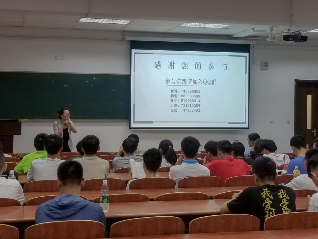 回望峥嵘岁月,感受新中国成立70周年取得的巨大成就。为帮助同学们顺利开展社会实践,把红色基因融入暑假实践,材料科学与工程学院、光电工程与仪器科学学院、建筑与艺术学院、广发网页版、运载工程与力学学部于2019年6月29日下午9点,在综合教学一号楼B103教室联合举办暑假实践宣讲会。广发网页版的团委书记纪丹红老师为本次会议的邀请嘉宾。