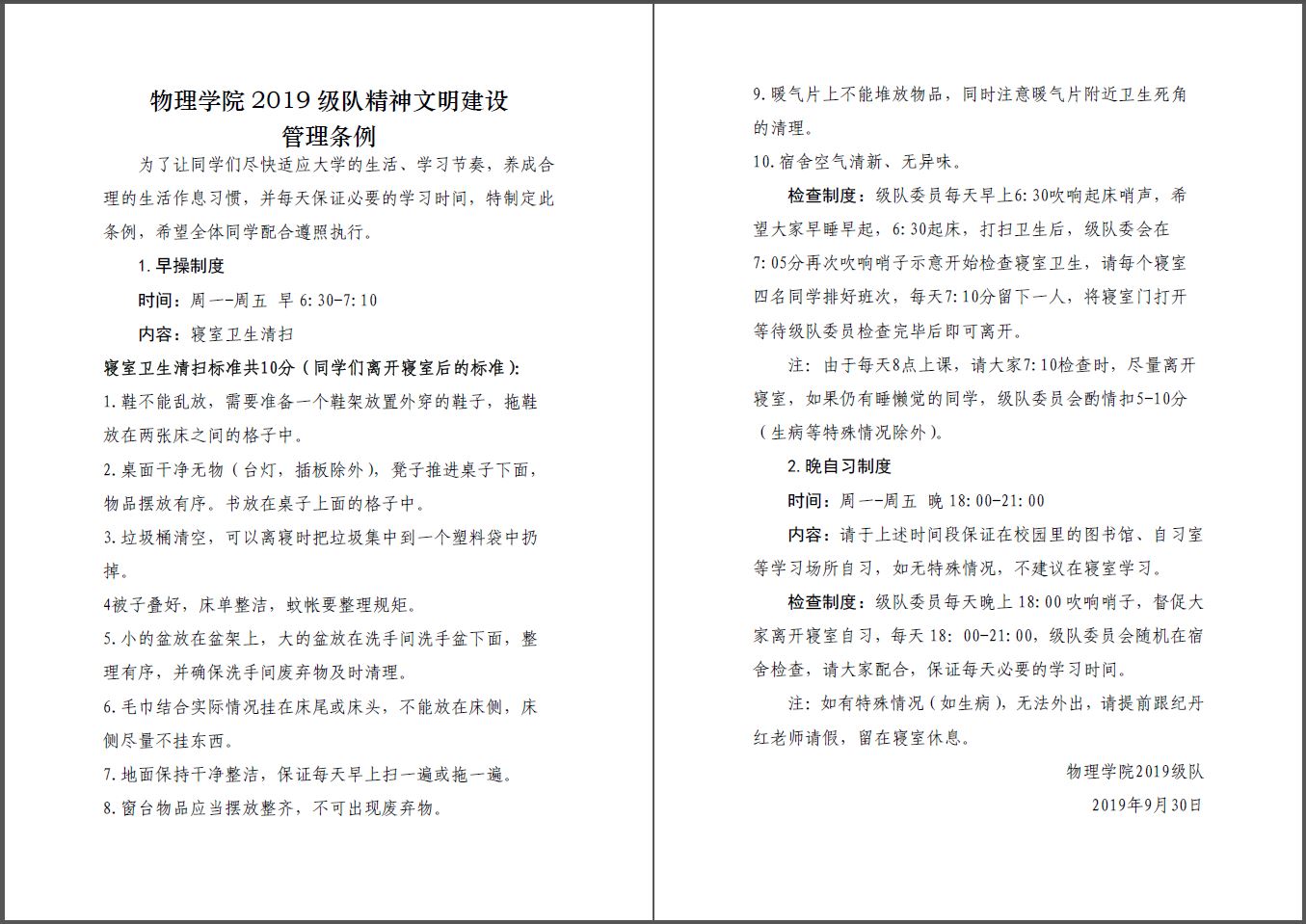 为落实大连理工大学安全教育活动月的号召,广发网页版将传承性的精神文明建设制度继续发扬,结合安全教育的初衷,设计早操和晚自习制度,为更好地保证大一学生身心安全保驾护航。这是具体的制度条例。
