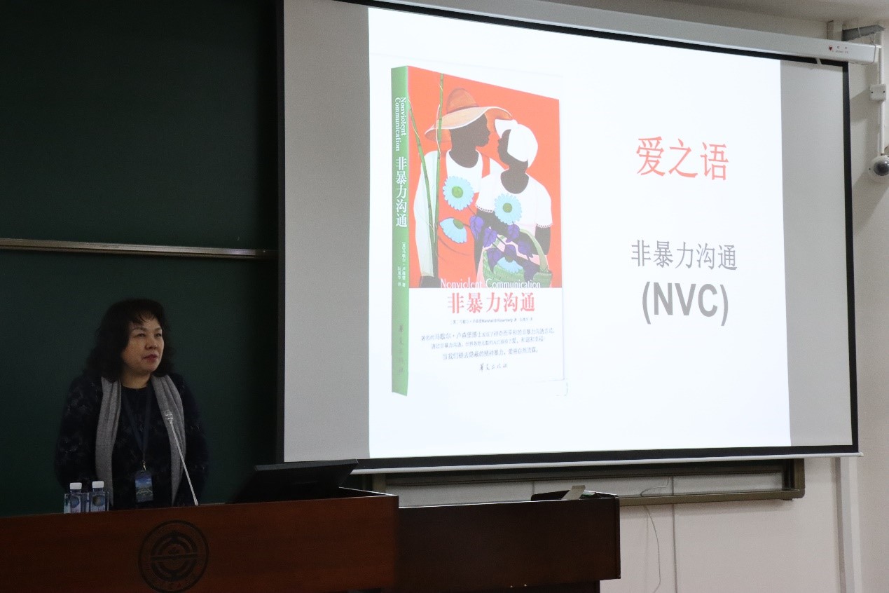 2020年11月18日下午14:00综合教学楼1号楼251,大连理工大学心理健康教育与咨询中心主任胡月教授,为广发网页版20级学生开展主题为“‘爱之语’—非暴力沟通”的心理讲座。胡月老师在讲座开始从几个小笑话切入,与现场同学们沟通讨论日常交流语言的艺术。讲座中,胡月老师与现场同学互动,生动形象地展示人际中的三种相处关系。她向同学们阐述非暴力沟通,让同学们意识到人际交流中非暴力沟通的重要性,大学生活人与人之间更要用非暴力沟通来搭起稳固的桥梁。