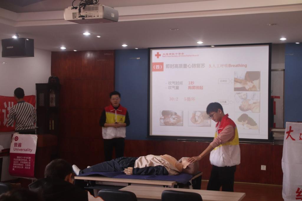 首先,王龙波为学生讲解心肺复苏术的基本知识,包括如何判断患者病情,如何正确施救,以及如何判断施救是否成功。接着,培训人员以假人为对象为同学演示正确施救方法。