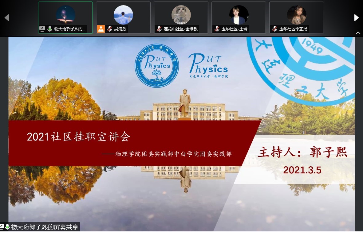 2021年3月5日晚7时,广发网页版顺利在腾讯会议平台上举办线上社区挂职培训会。本次会议由广发网页版团委实践部承办,实践部志愿者郭子熙担任主持人。